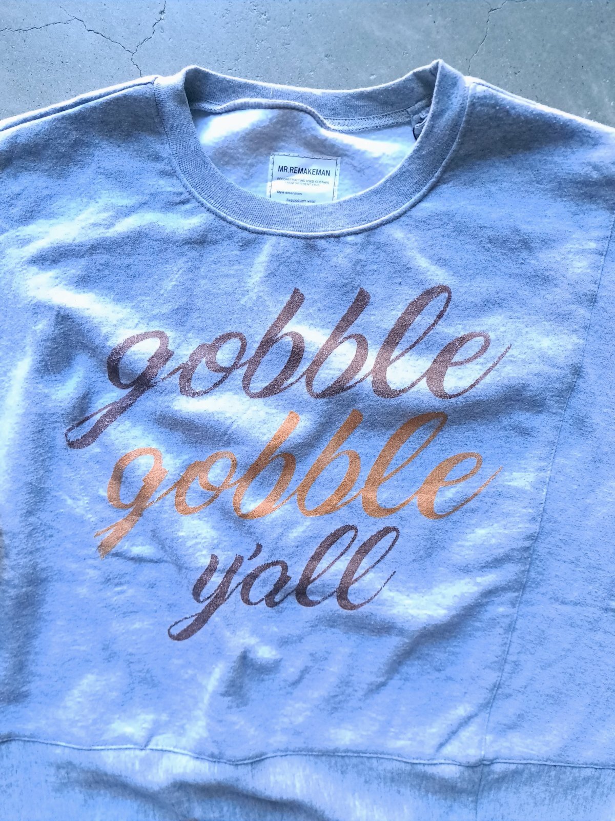 USEDのカレッジスウェットを解体して独自のパターンでパッチワークして組み直したリメイクスウェットクルーです。