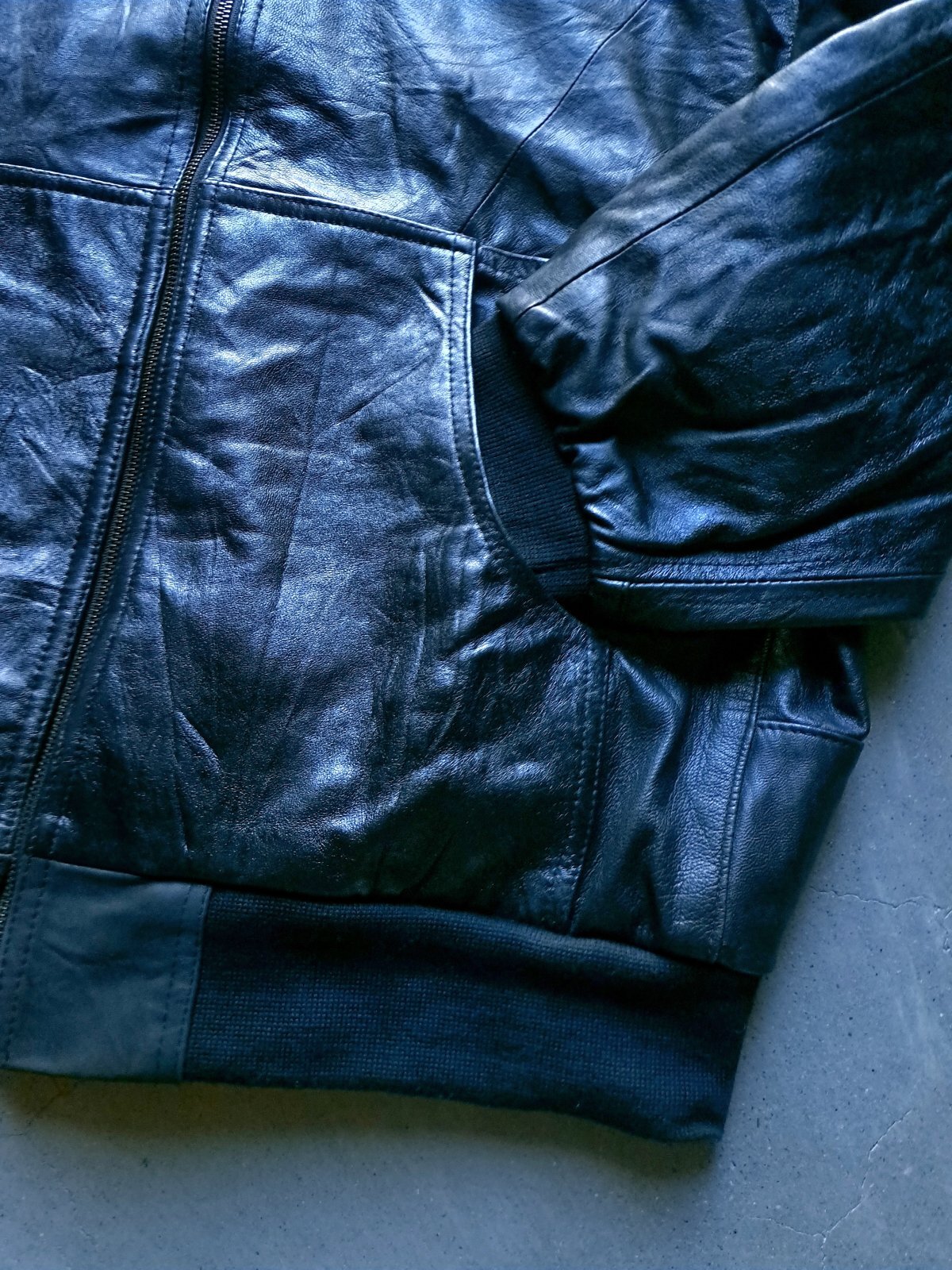 既に着込んだ古着独特の風合いが、レザー特有の男らしい武骨感を演出してくれる1枚に仕上がっています。